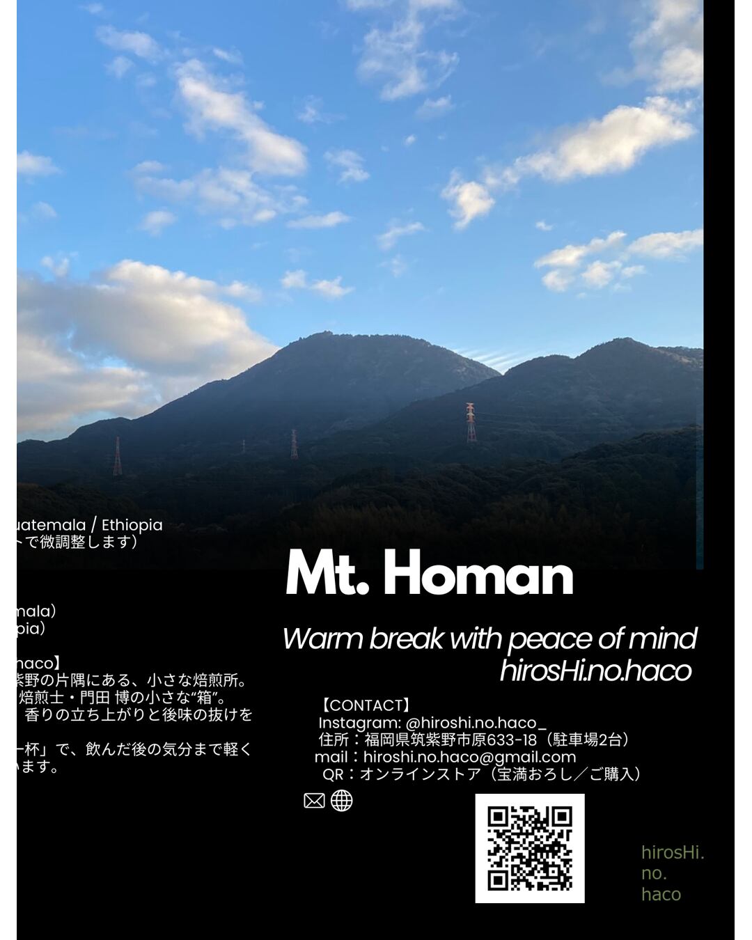 焙煎所の窓から見える稜線と、空の抜ける感じ。